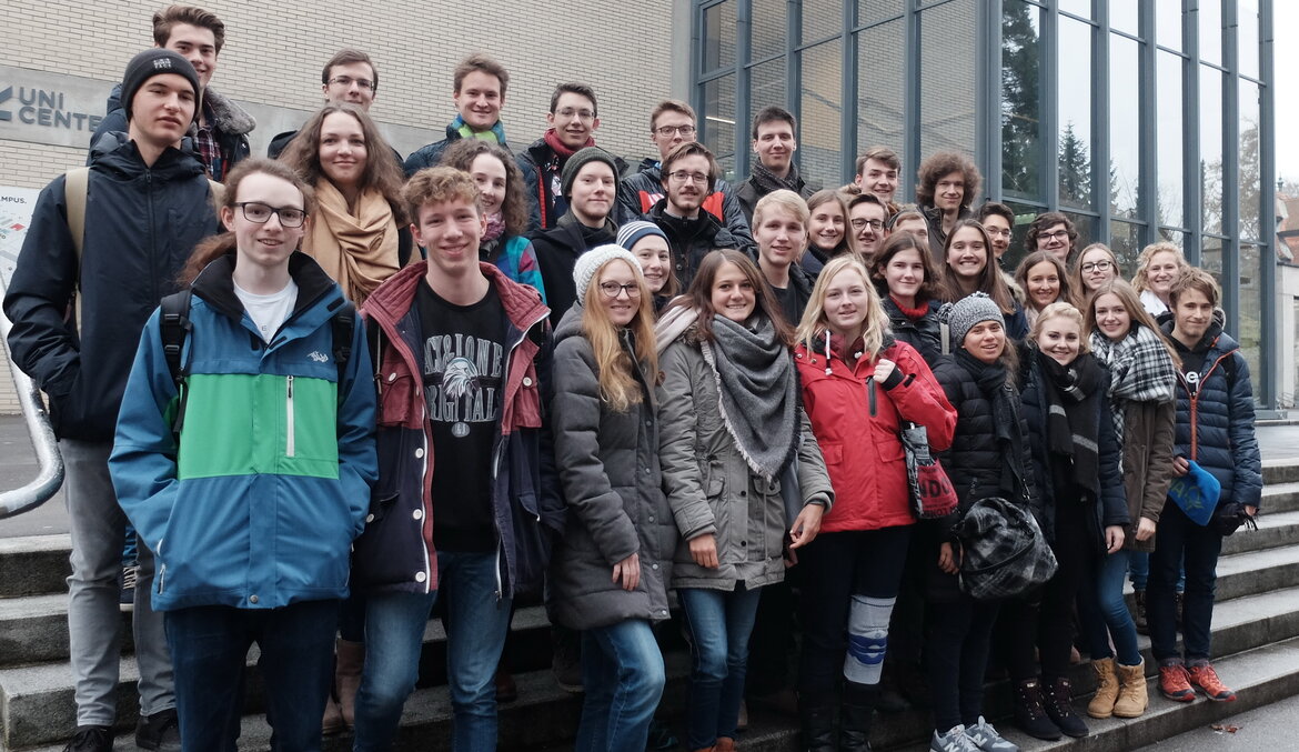 Die Preisträgerinnen und Preisträger aus Österreich sowie Bayern waren zum Dr. Hans Riegel-Campus in Linz (Österreich) eingeladen. 33 Teilnehmende konnten an diesem Wochenende ein vielfältiges Programm erleben und sich untereinander vernetzen. Am Freitagnachmittag erhielten sie einen Einblick in das Forschungsunternehmen RECENDT, das sich mit zerstörungsfreier Prüfung auseinandersetzt. Am Samstag standen Workshops an der JKU Linz zu den Themen „Oberflächenphysik“ und „Chipdesign“ auf dem Programm. Den Abschluss bildete ein Besuch im Ars Electronica Center mit einer Highlight-Führung, einem Workshop im Futurelab und einem Impulsvortrag von Dr. Martina Mara (Forschungsbereich RoboPsychology).